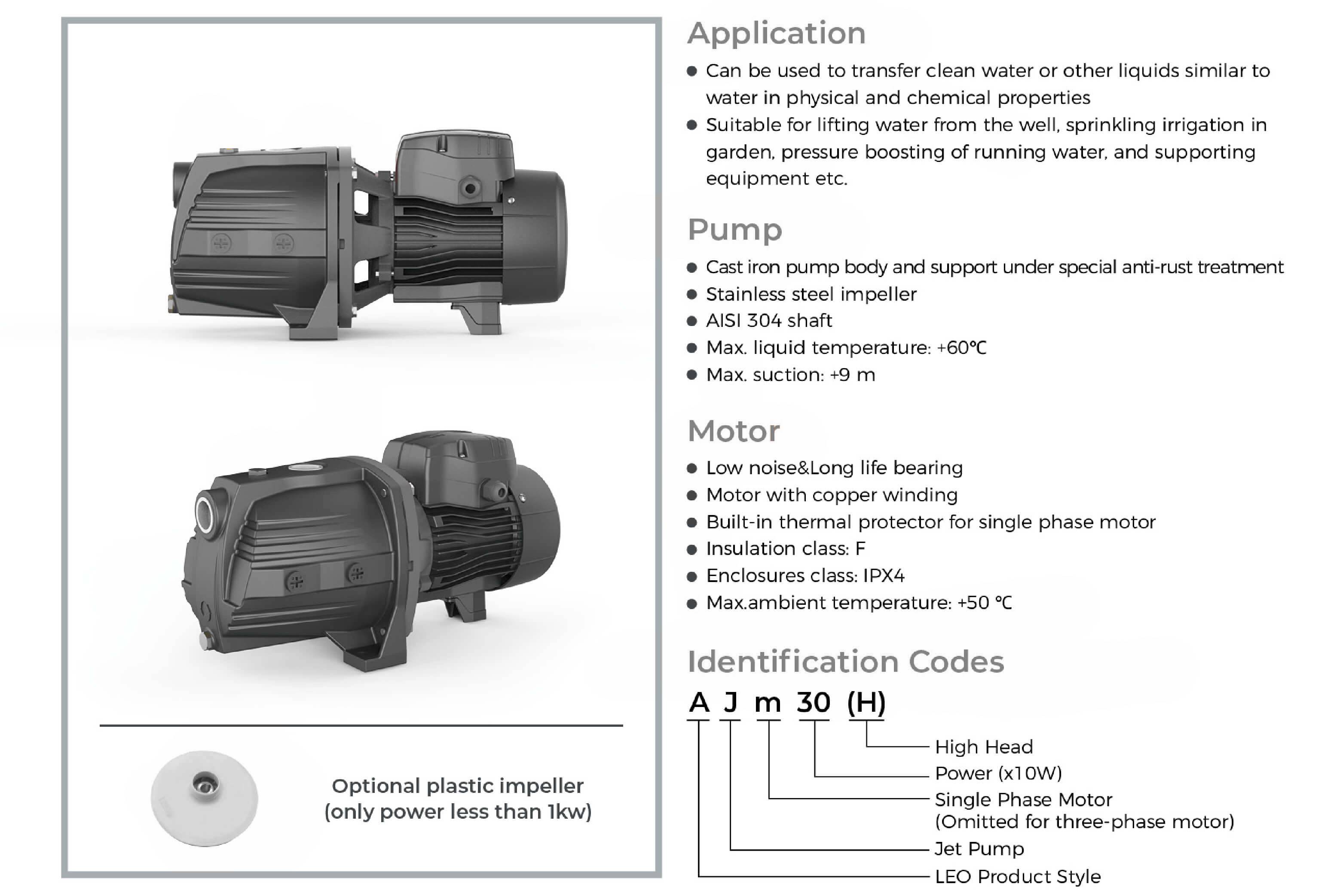• Suitable for lifting water from the well, sprinkling irrigation in garden, pressure boosting of running water, and supporting equipment etc.