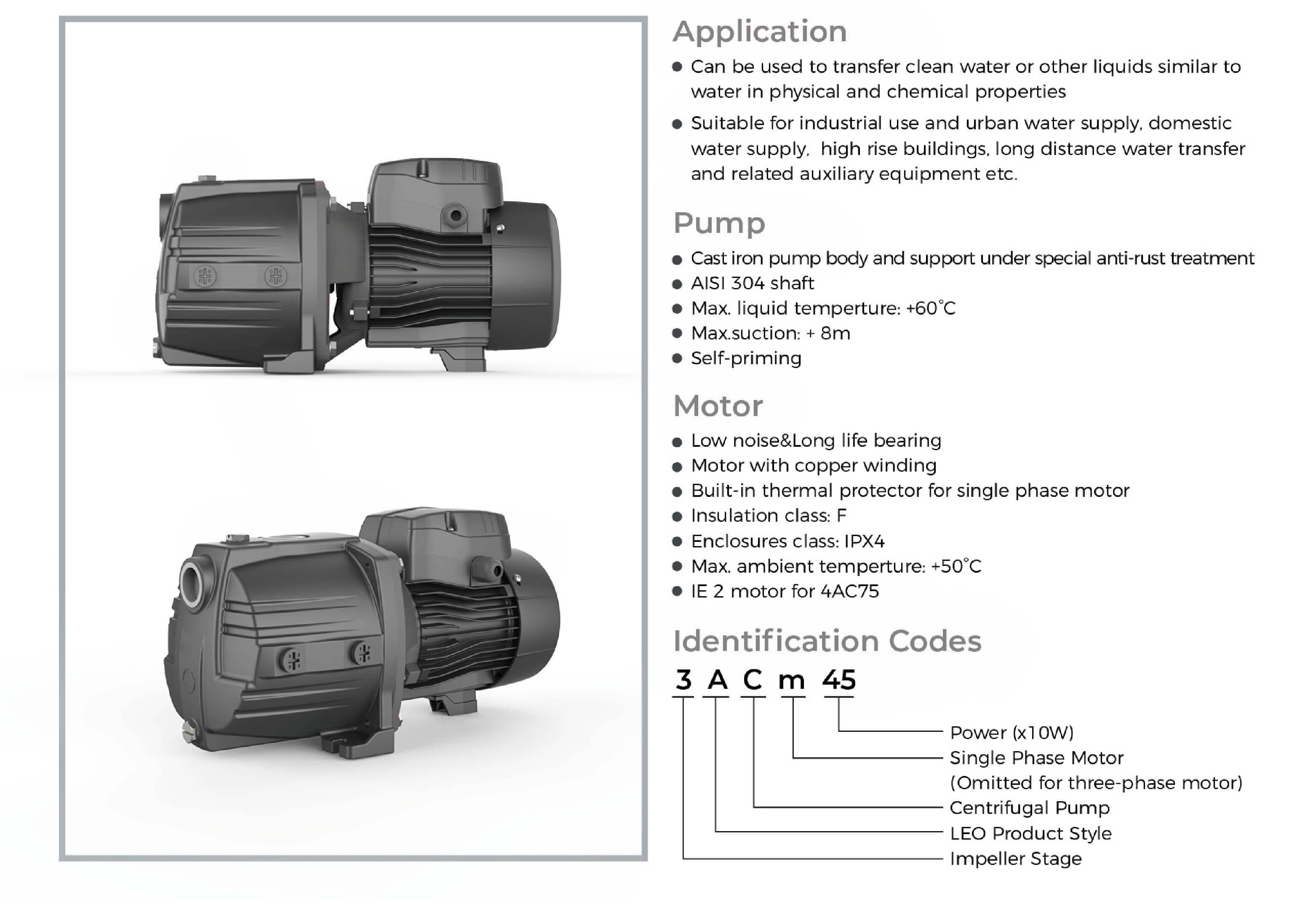 • Suitable for industrial use and urban water supply, pressure boosting for high buildings and fire fighting, garden irrigation, long-distance water transfer, heating ventilation and air conditioning, circulation and pressure boosting for cold and hot water, and supporting equipment etc.