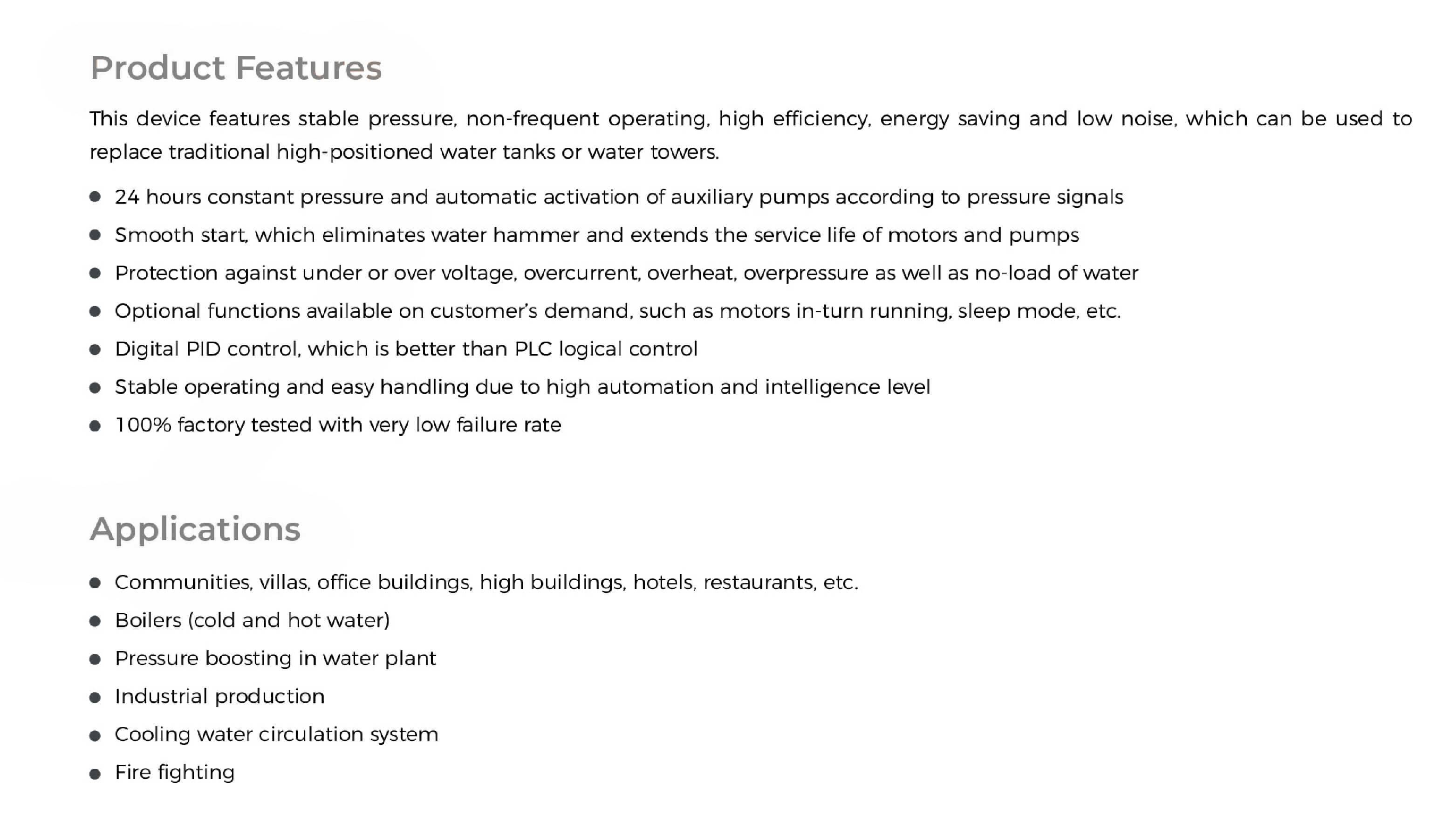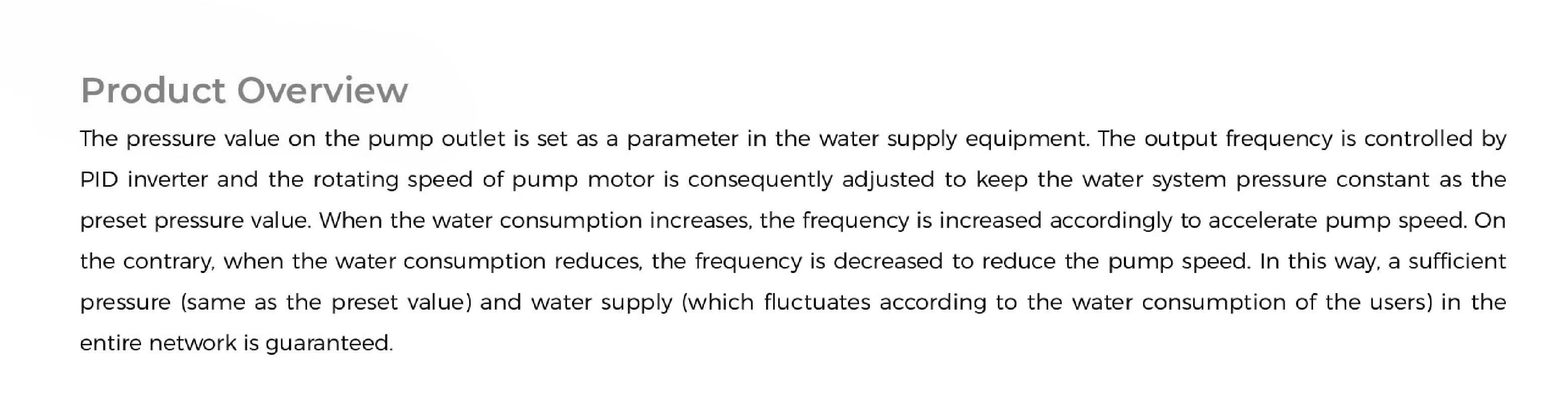 • Pressure boosting in water plant