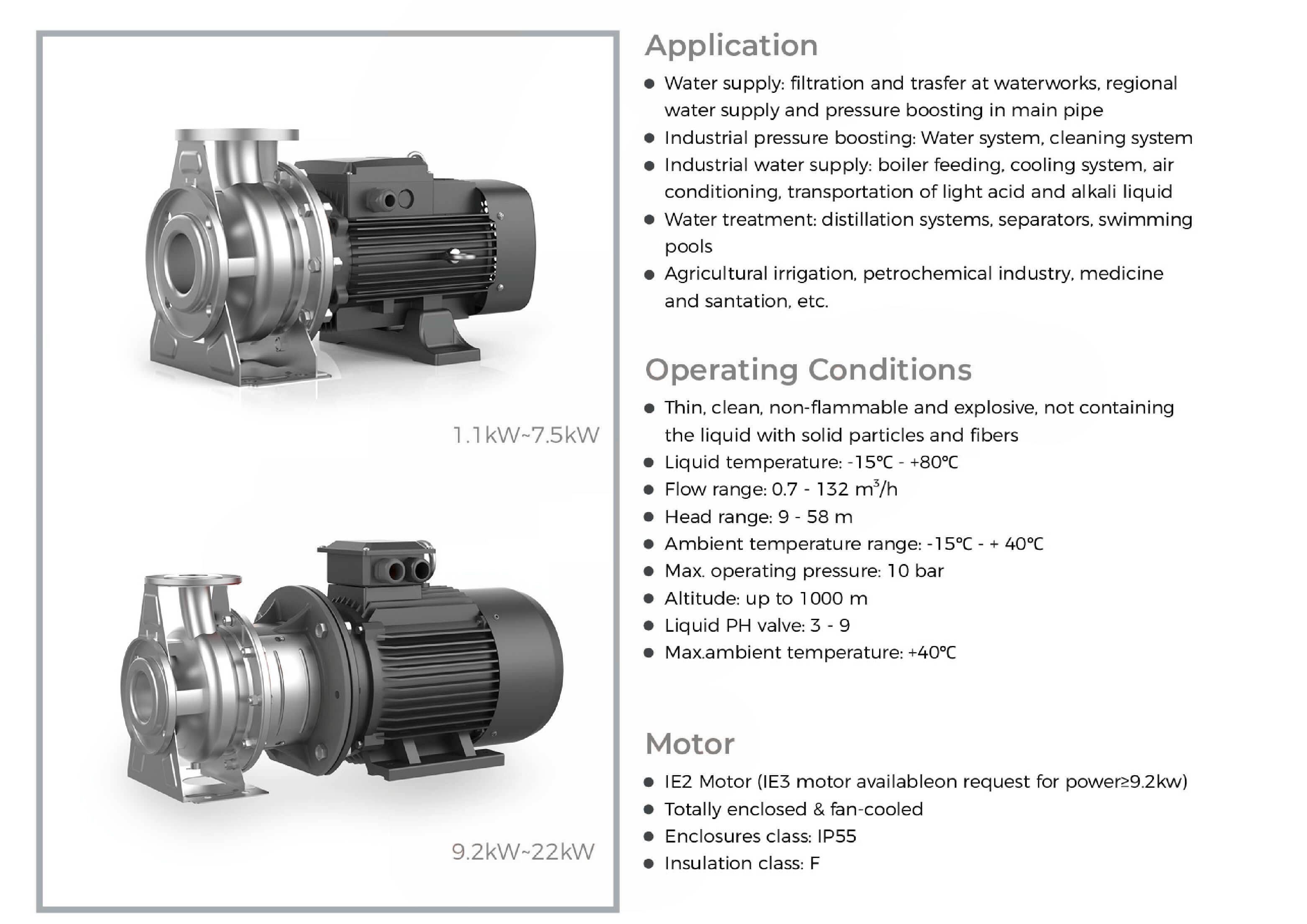 • Agricultural irrigation, petrochemical industry, medicine and santation, etc.