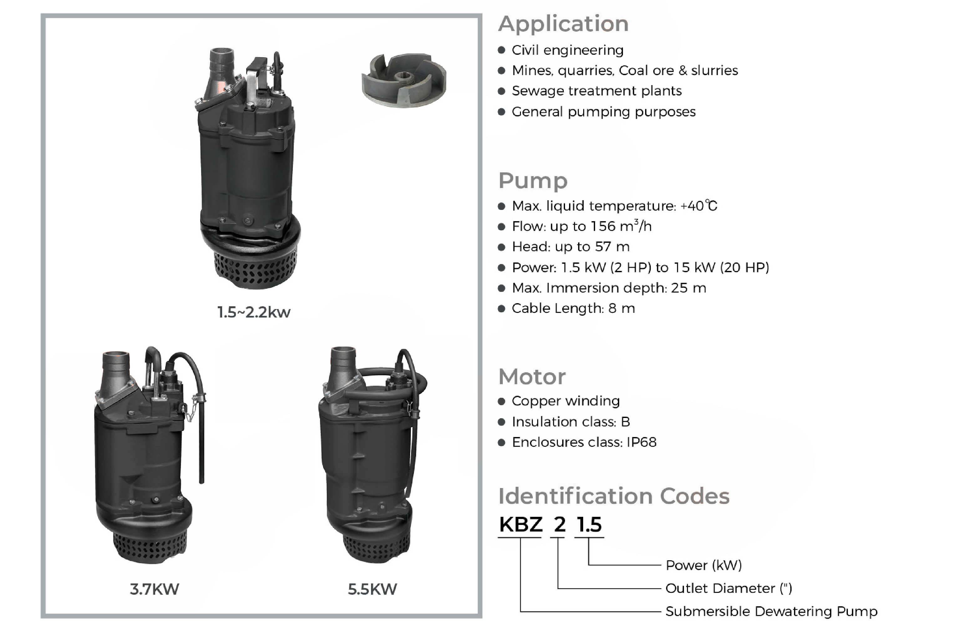 • Civil engineering • Mines, quarries, Coal ore & slurries • Sewage treatment plants • General pumping purposes